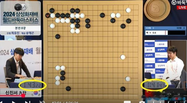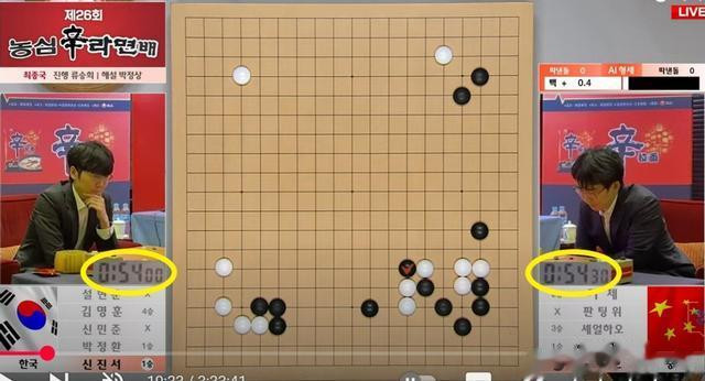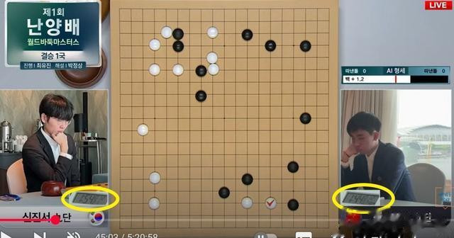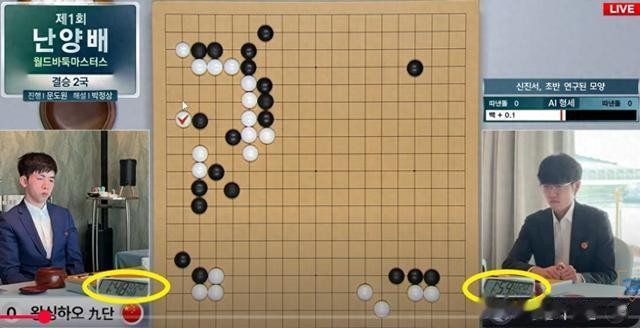 李轩豪第9手变招无疑是“复盘”2022年国手山脉杯决赛申真谞执白胜卞相壹的布局,前15手与本局一模一样,申真谞第16手当然变招,先在右上尖刺随即在右下玩起AI大斜新定式,李轩豪显然事前研究不深,临阵磨枪,长考后用时比对手多13分钟,却依然中刀倒地。
